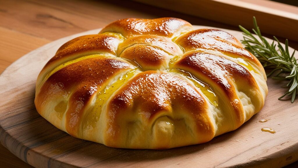 Picatostes, pollo rebozado, cebolla frita y parmesano